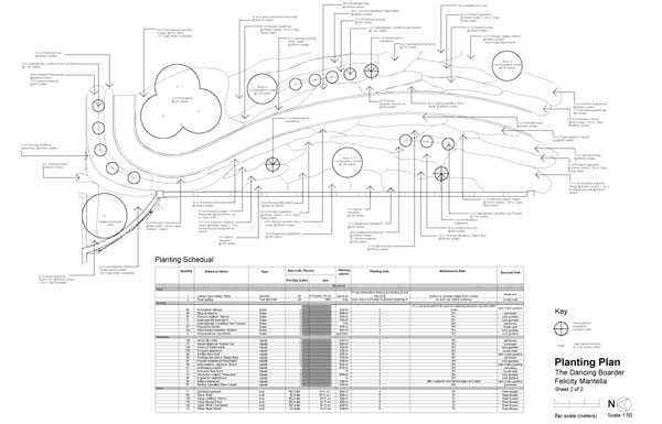 After we have discussed the sketch designs with the client we will work towards a set of completed designs, including construction details, sections showing level changes, planting plans and schedules.