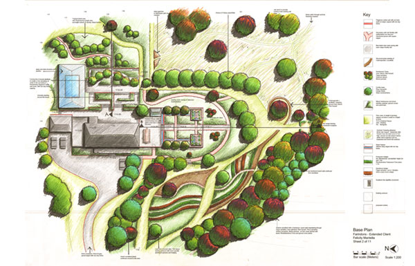 A master plan communicates, through drawings, to the client the overall site layout, proportions and how different areas interact with each other. It can show views, vistas and level changes.